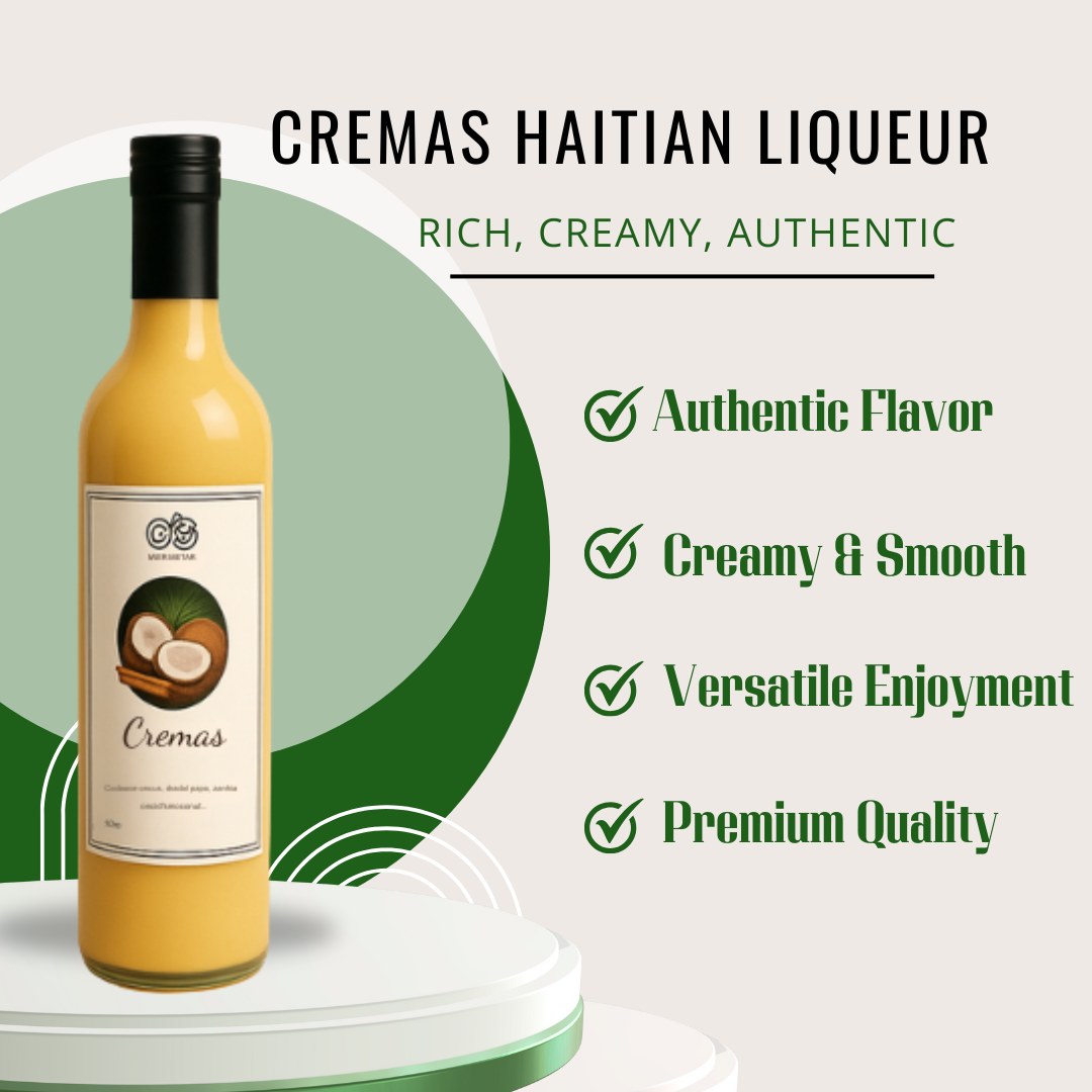 Indulge in the smooth and creamy richness of Kyahrastore Cremas, a true Haitian classic that combines coconut, vanilla, cinnamon, and a touch of rum for an unforgettable experience.